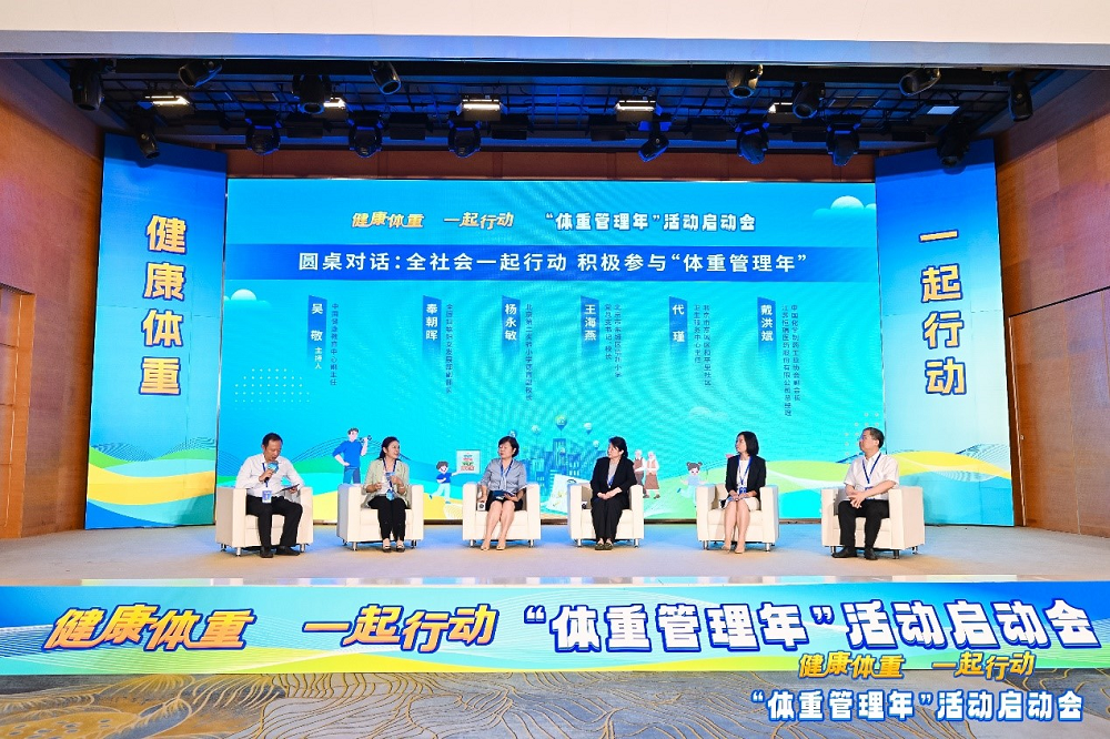 启动会圆桌对话环节,在中国健康教育中心副主任吴敬主持下,全国妇联妇女发展部副部长奉朝晖,北京第二实验小学德育副校长杨永敏,北京市东城区培新小学党总支书记、校长王海燕,北京市东城区和平里社区卫生服务中心主任代瑾和中国化学制药工业协会副会长、江苏PA视讯医药股份有限公司总经理戴洪斌,围绕“全社会一起行动,积极参与‘体重管理年’”议题,分别从家庭、学校、医疗卫生机构、健康产业等角度,从关注关爱妇女、儿童、老人等重点人群体重管理出发,分享了自己的观点和看法。